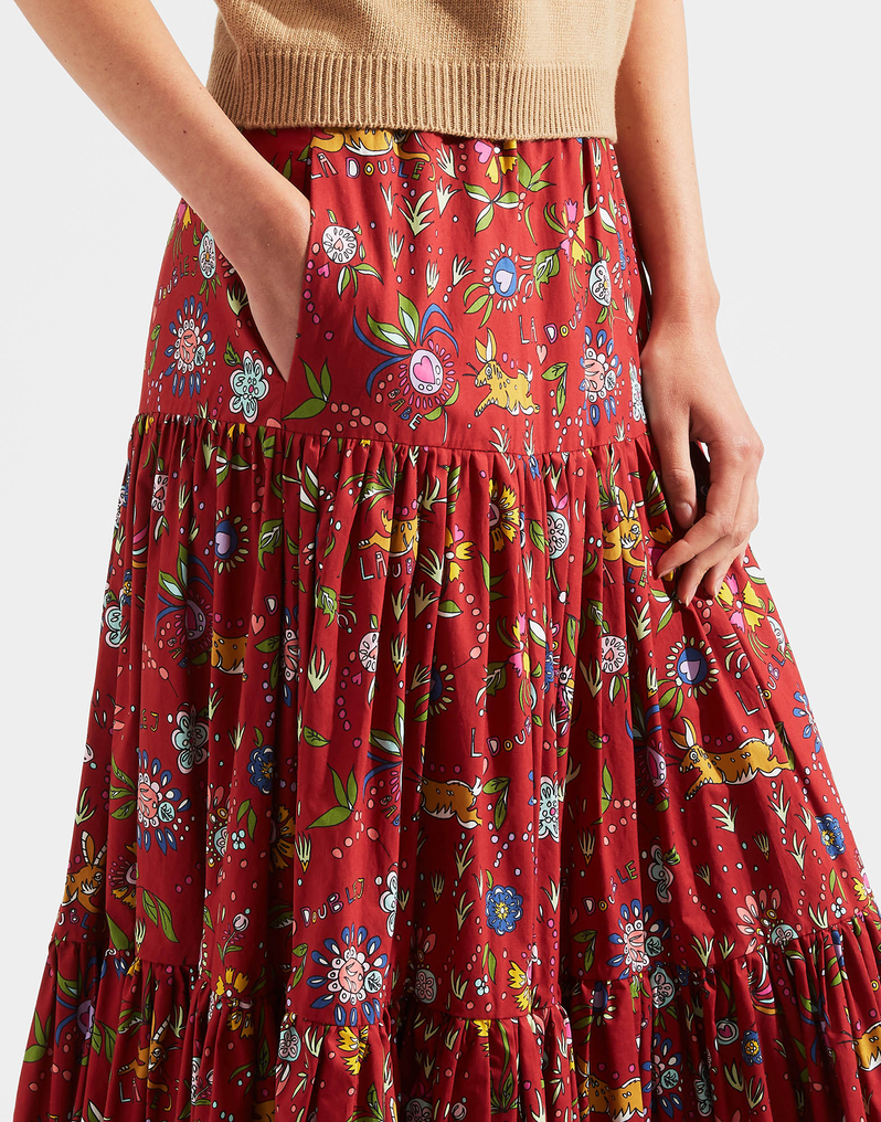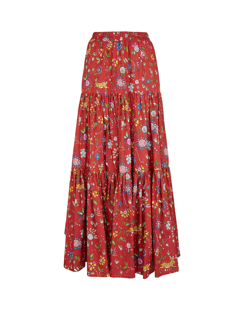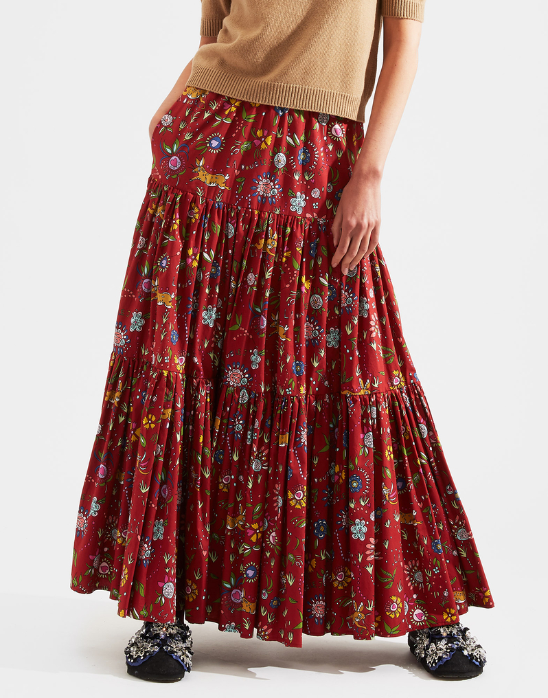 Made in comfy lightweight cotton poplin, this skirt’s voluminous tiers of printed fabric can take it from a casual outing to a major occasion-moment in a snap. You can wear it up high as a strapless maxi dress (it looks great belted!) or traditionally at your waist or slung low on the hips.