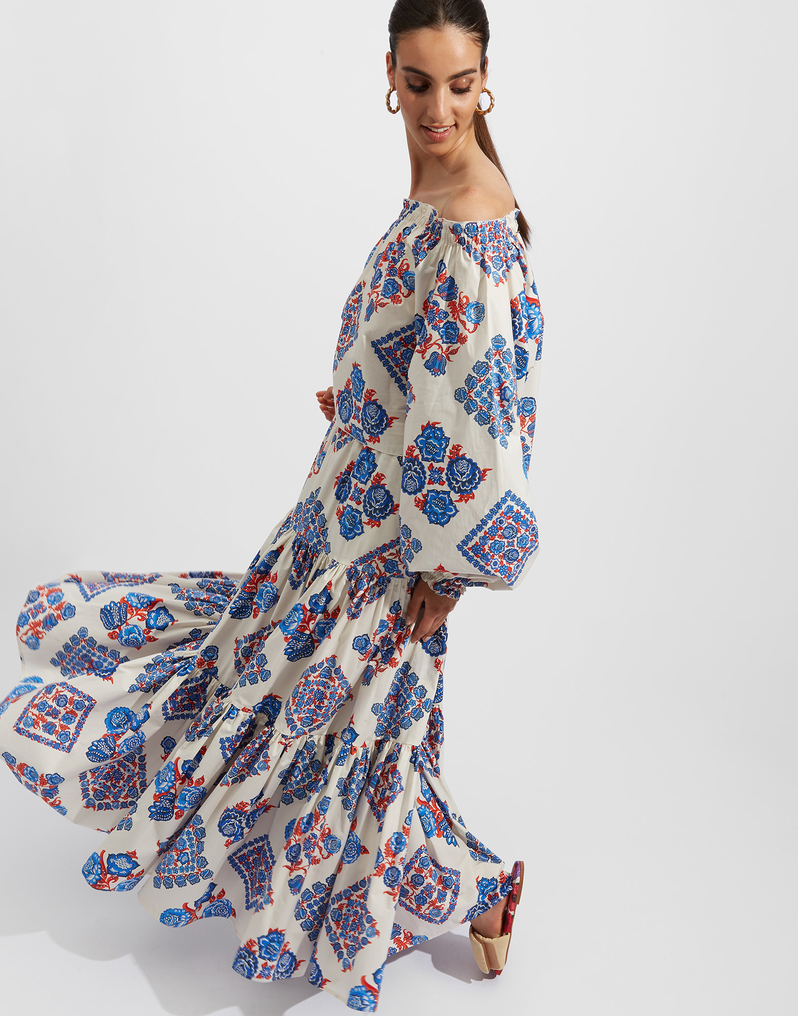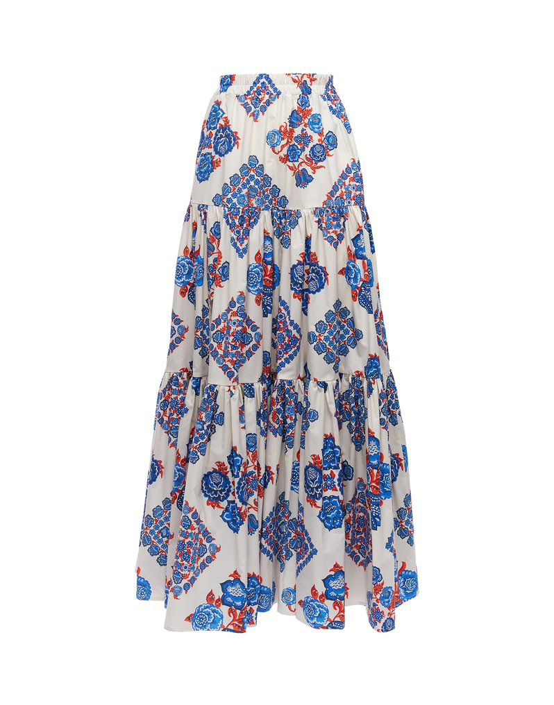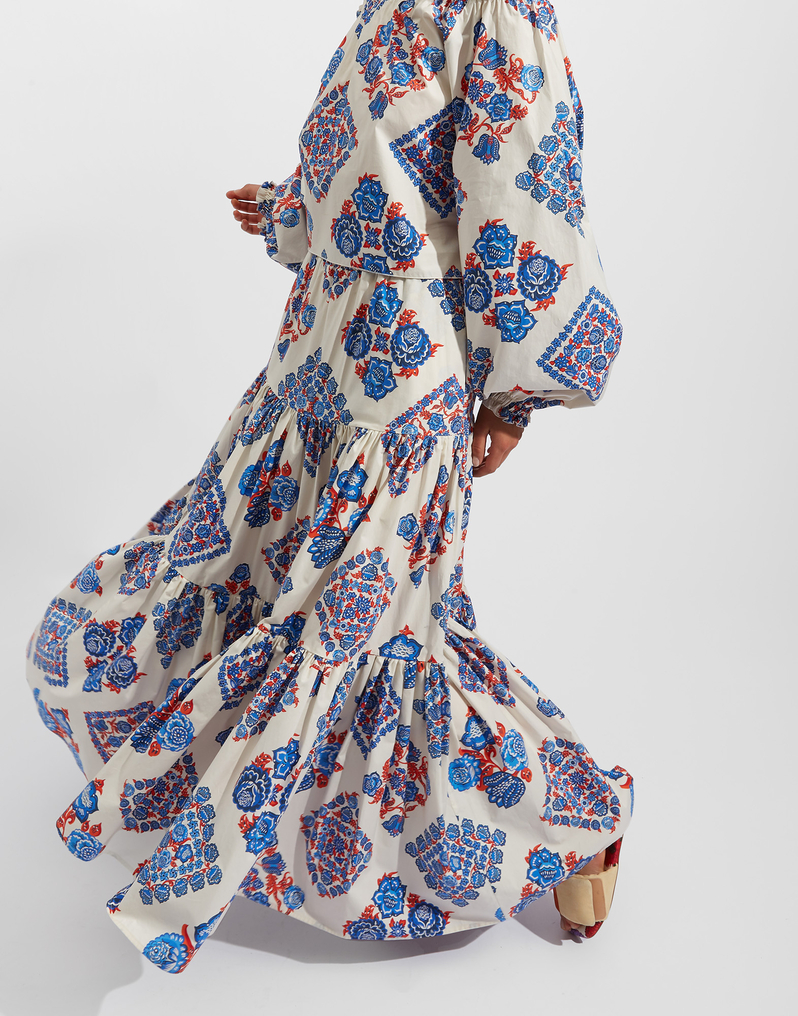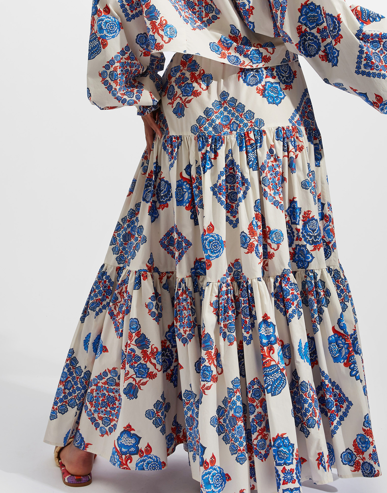 Made in comfy lightweight cotton poplin, the Big Skirt’s voluminous tiers of printed fabric can take it from a casual outing to a major occasion-moment in a snap. You can wear it up high as a strapless maxi dress (it looks great belted!) or traditionally at your waist. Clash it with an LDJ printed bikini for a cute beachside look.