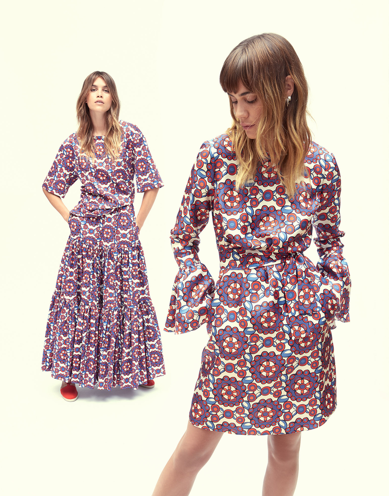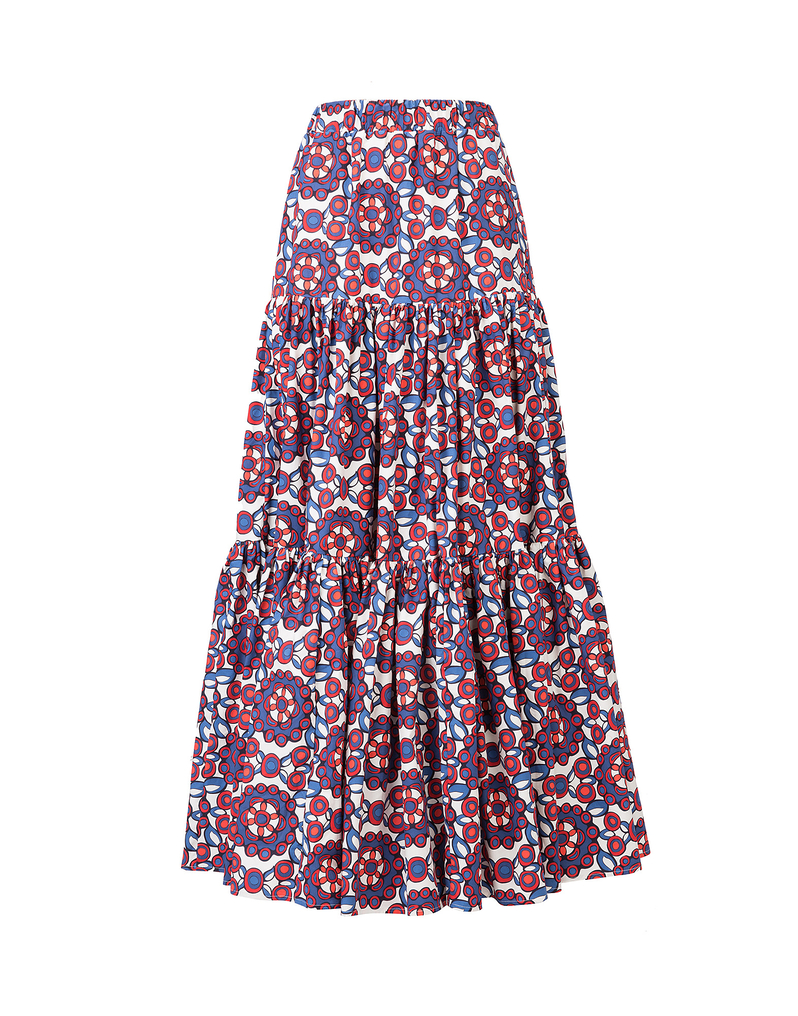 Our peasant comes in a lightweight cotton poplin, but the voluminous tiers of the printed fabric can take it from a casual outing to a major occasion-moment in a snap. The fit is relaxed and comfortable thanks to its elastic waist. You can wear it up high as a strapless maxi dress (it looks great belted!) or traditionally at your waist or slung down below the hips.