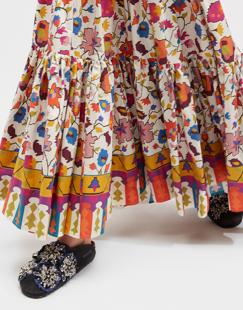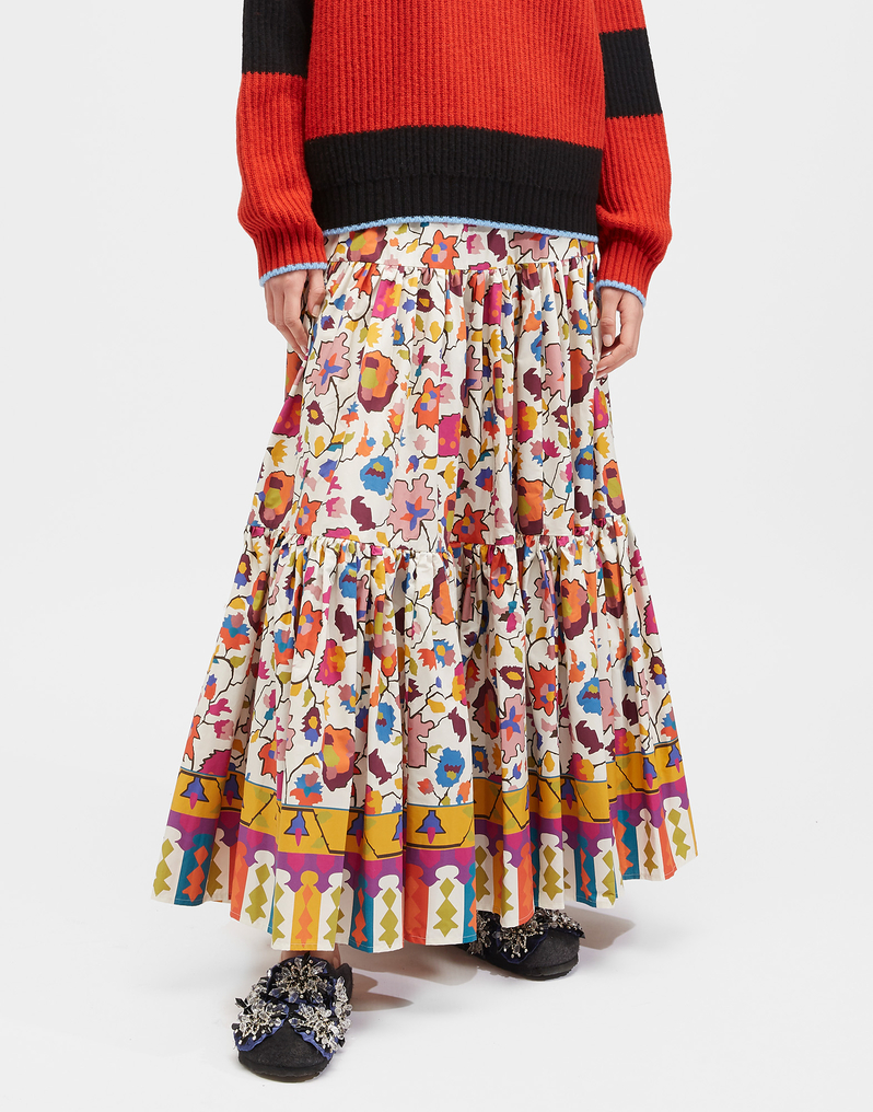 Made in comfy lightweight cotton poplin, this skirt’s voluminous tiers of printed fabric can take it from a casual outing to a major occasion-moment in a snap. You can wear it up high as a strapless maxi dress (it looks great belted!) or traditionally at your waist or slung low on the hips.