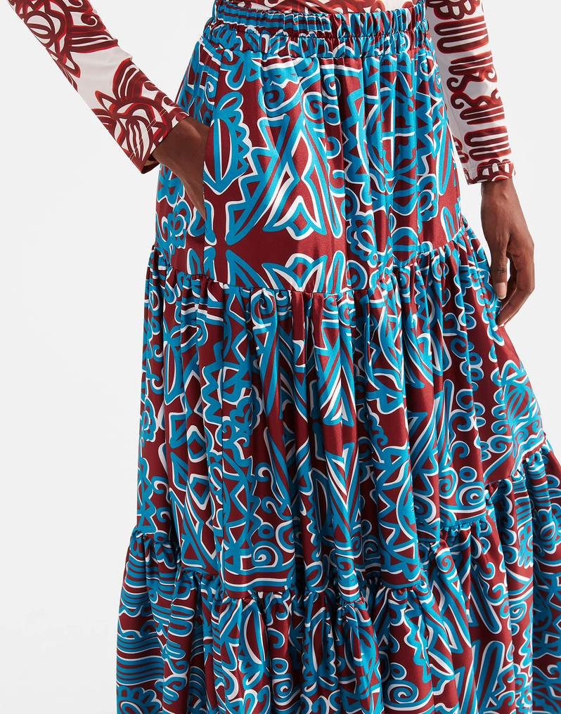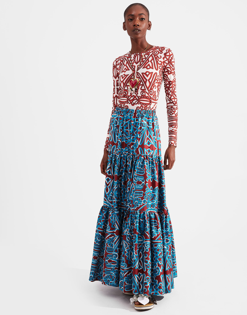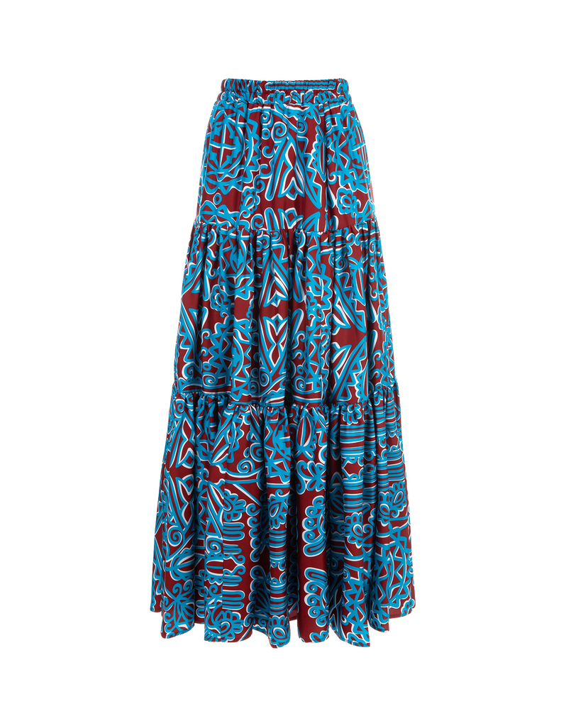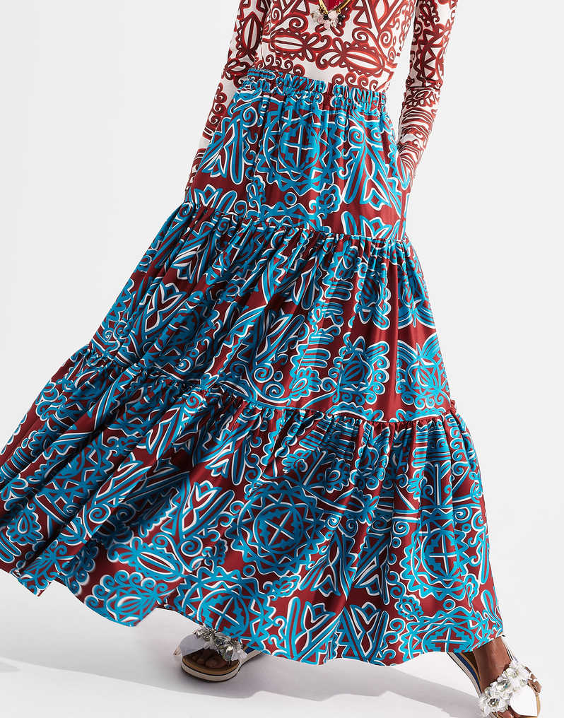 Made in comfy lightweight cotton poplin, this skirt’s voluminous tiers of printed fabric can take it from a casual outing to a major occasion-moment in a snap. You can wear it up high as a strapless maxi dress (it looks great belted!) or traditionally at your waist or slung low on the hips.