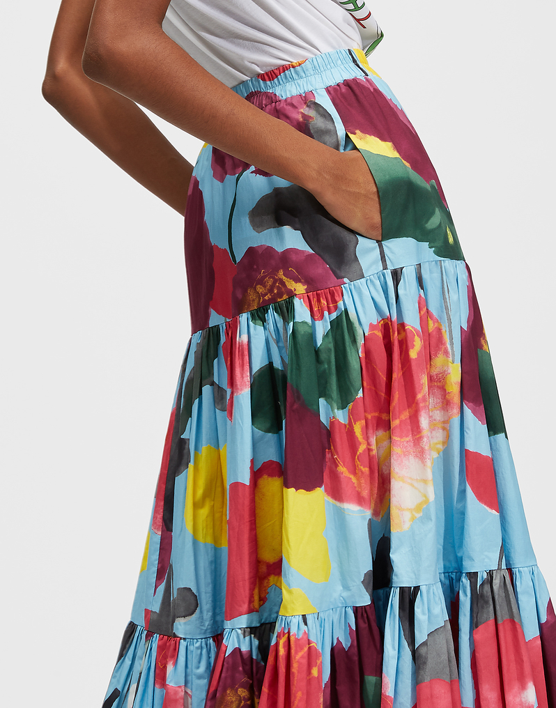 Made in comfy lightweight cotton poplin, this skirt’s voluminous tiers of printed fabric can take it from a casual outing to a major occasion-moment in a snap. You can wear it up high as a strapless maxi dress (it looks great belted!) or traditionally at your waist or slung low on the hips.
