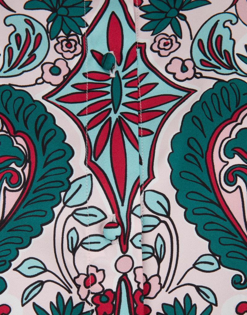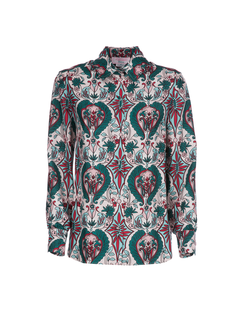 This classic, straight-cut button down shirt is timeless and matches virtually anything in your wardrobe. The fit is straight and feminine with slightly gathered sleeves that hit at the wrist. This shirt is a LaDoubleJ Evergreen and can we be worn with its matching Skirt for a va-va-voom effect, or toned down with jeans or a simple skirt.
