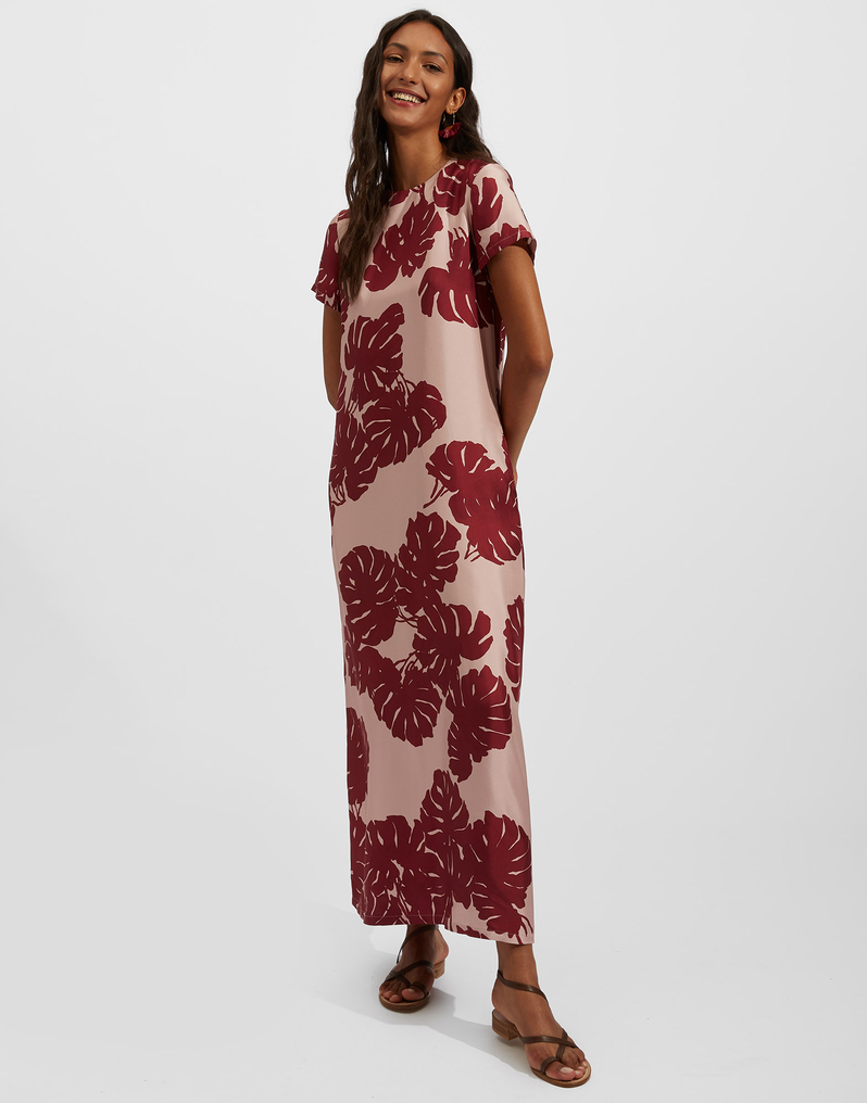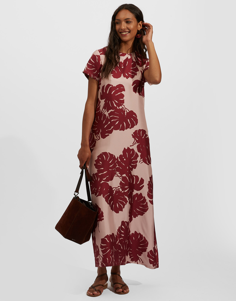 Swing Dress Monstera Rosa in Silk Twill