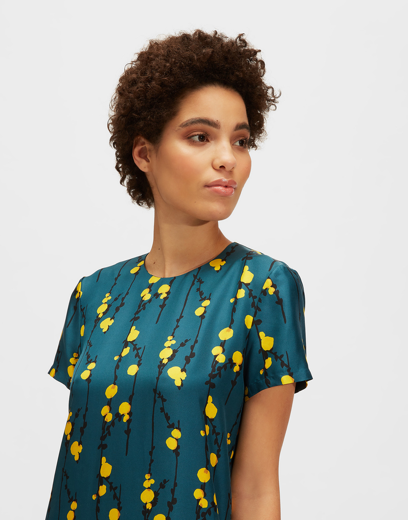 You never forget your first love and this is the story of our swing dress. Our very first model, the easy silhouette is meant to take you from Sunday breakfast to a snappy desk job and all the way through cocktails. Our swing is slim in the shoulders and generous in the hips, a classic t-shirt silhouette that falls into an A-line hitting just above the ankles.For those of you insisting on more shape at the waist, it can also be belted with a LaDoubleJ scarf!