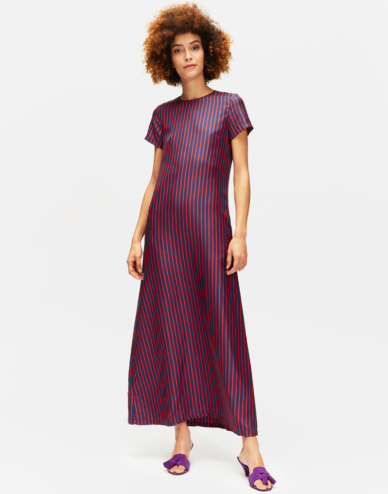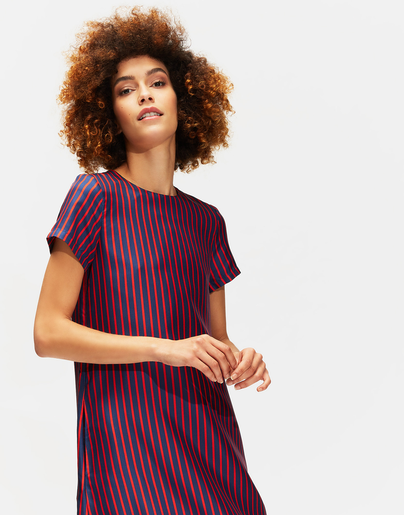 You never forget your first love and this is the story of our swing dress. Our very first model, the easy silhouette is meant to take you from Sunday breakfast to a snappy desk job and all the way through cocktails. Our swing is slim in the shoulders and generous in the hips, a classic t-shirt silhouette that falls into an A-line hitting just above the ankles.For those of you insisting on more shape at the waist, it can also be belted with a LaDoubleJ scarf!