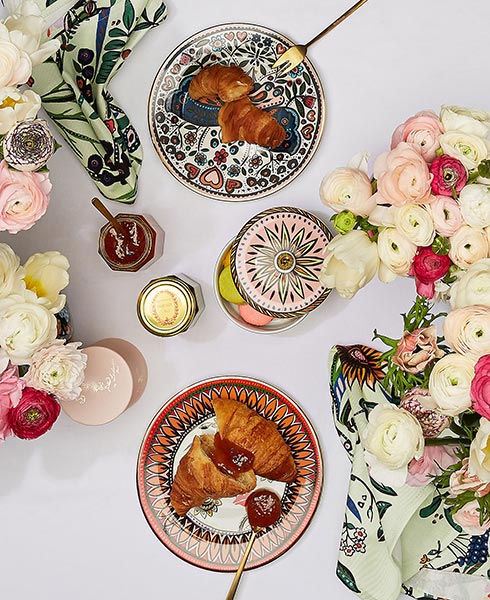 The Libellula (or "dragonfly" in English) is one of La DoubleJ's first spirit animals symbolizing joy, transformation and courage. We've now emblazoned her across more gold-trimmed porcelains than ever before, expanding our already beloved tabletop family to include Serving Platters, decorative Trinket Trays and Cake Stands for special celebrations, along with new linens to up your Italian occasion ante.