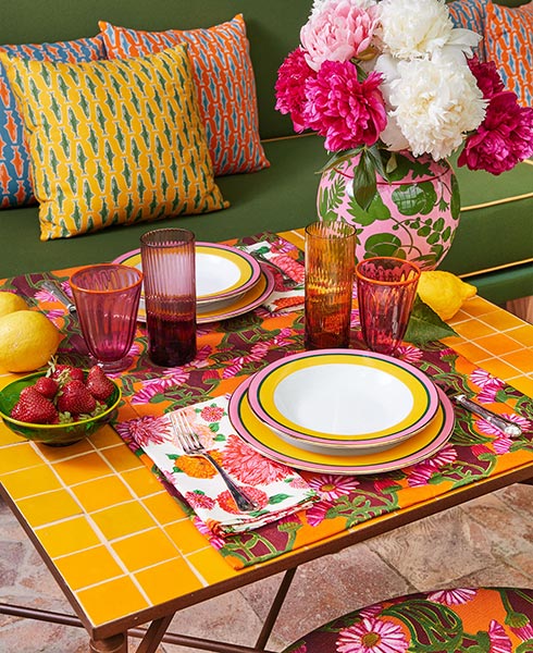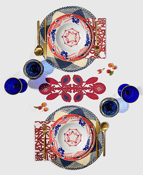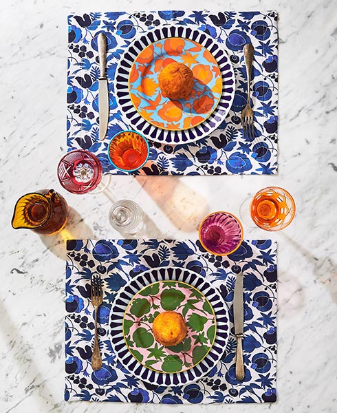 Shop the collectionInspired by the rich artistry of one of Italy’s most iconic cities, the “Napoli” collection is an ode to Naples’ majestic mosaics and sunbaked frescoes, blending grand geometrics with abundant florals for an infinite array of mix-and-match tabletops. These bold blue hues recall the incomparable energy of our majestic neighboring ocean, the Mediterranean.