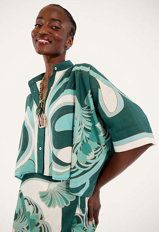 A cross between a pencil skirt and A-line silhouette, the Baia is designed to be ultra flattering with a gently flaring shape that hugs the butt and flares at the hem. Crafted in our stretch cotton, it returns for all your ultra chic invites in this majestic, hand-placed Phoenix print in which we imagine you swanning around Piero Portaluppi penthouses with Milan’s finest. Wear it with a crisp white shirt just about anywhere or with the matching Baia Crop Top for your next modern black tie moment.