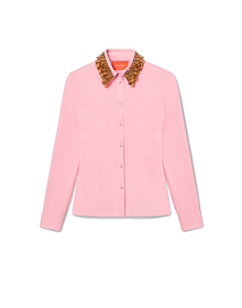 Fitted Shirt Solid Pink in Embroidered Fluid Jersey