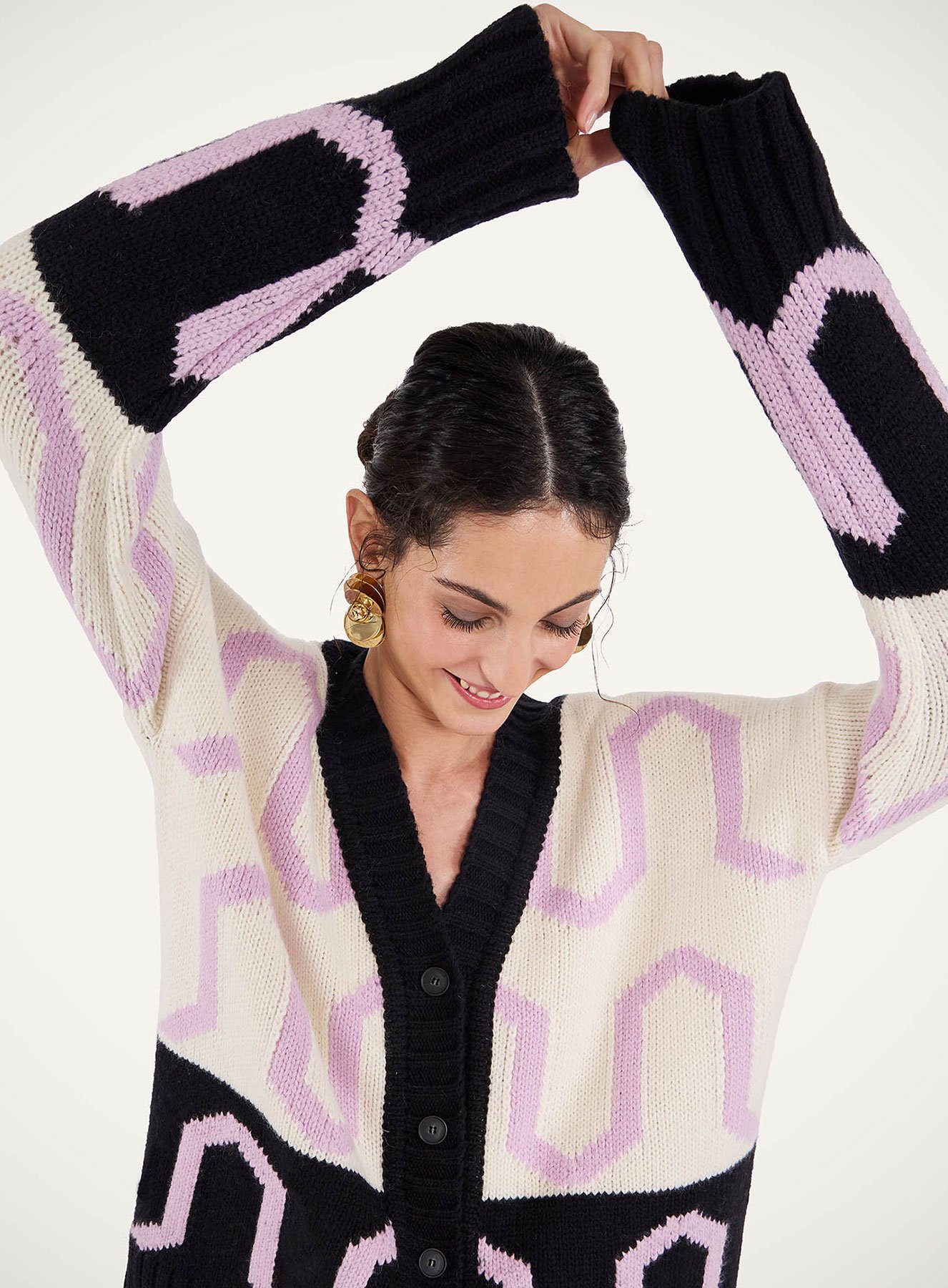 Comber Cardigan Multicolor Ivory & Black in Wool