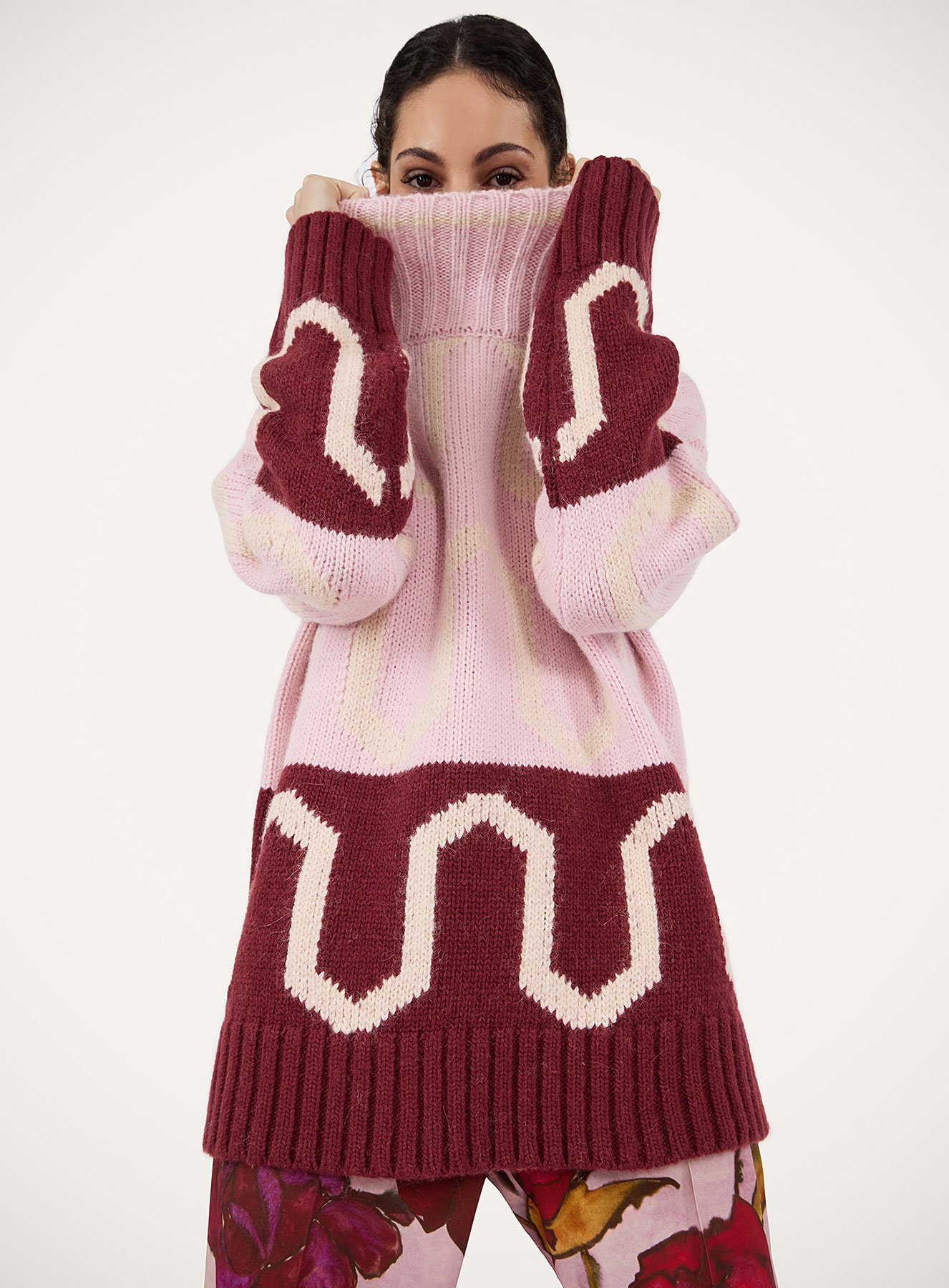 Comber Turtleneck Multicolor Pink & Burgundy in Wool